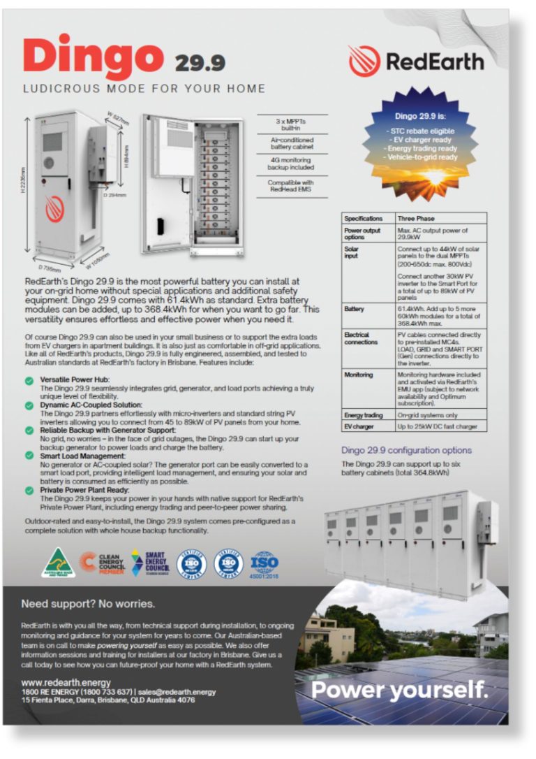 Welcome to our Resource Centre, your go-to hub for essential RedEarth product information. Explore and download product brochures, manuals (including legacy manuals) and how-to-guides. Whether you’re a customer, installer, reseller, or simply a renewables enthusiast, this is your one-stop destination for our range of comprehensive and easily accessible resources.