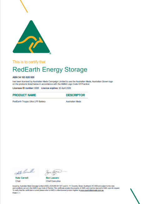 Troppo ULTRA Australian Made Certificate